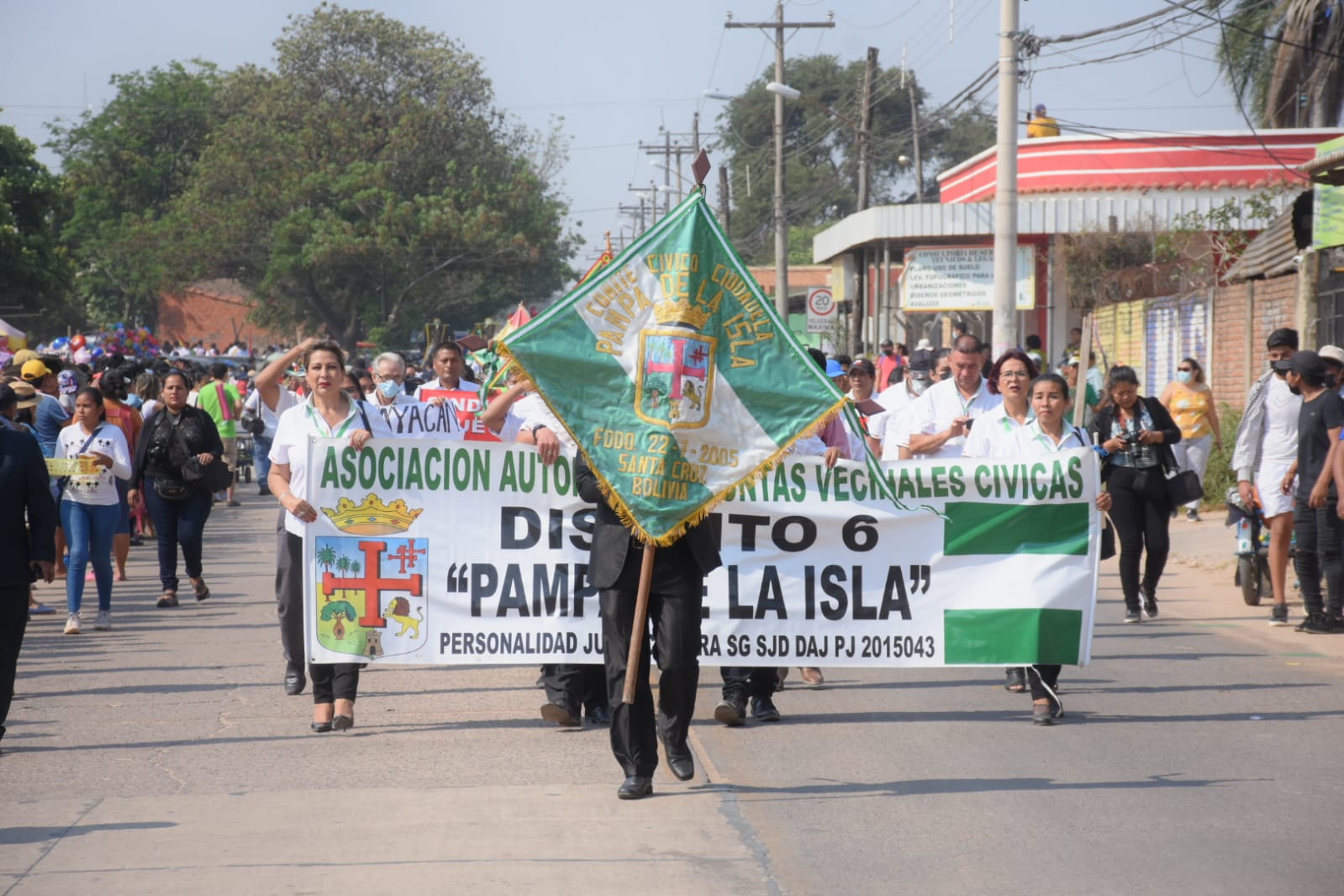 El Gobierno Autónomo Municipal de Santa Cruz de la Sierra, representado por sus directores y por el sub alcalde del Distrito Municipal 6, Marco Antonio Justiniano, participó del desfile cívico por el 62° aniversario de la Pampa de la Isla. En la ocasión, Justiniano anunció que en los próximos días se hará la entrega de importantes obras y que esta noche se tiene prevista la realización de la serenata cultural, que tiene como objetivo la promoción de artistas locales de la zona y la exposición de artesanías elaboradas por las diferentes asociaciones de mujeres que habitan en este lugar.