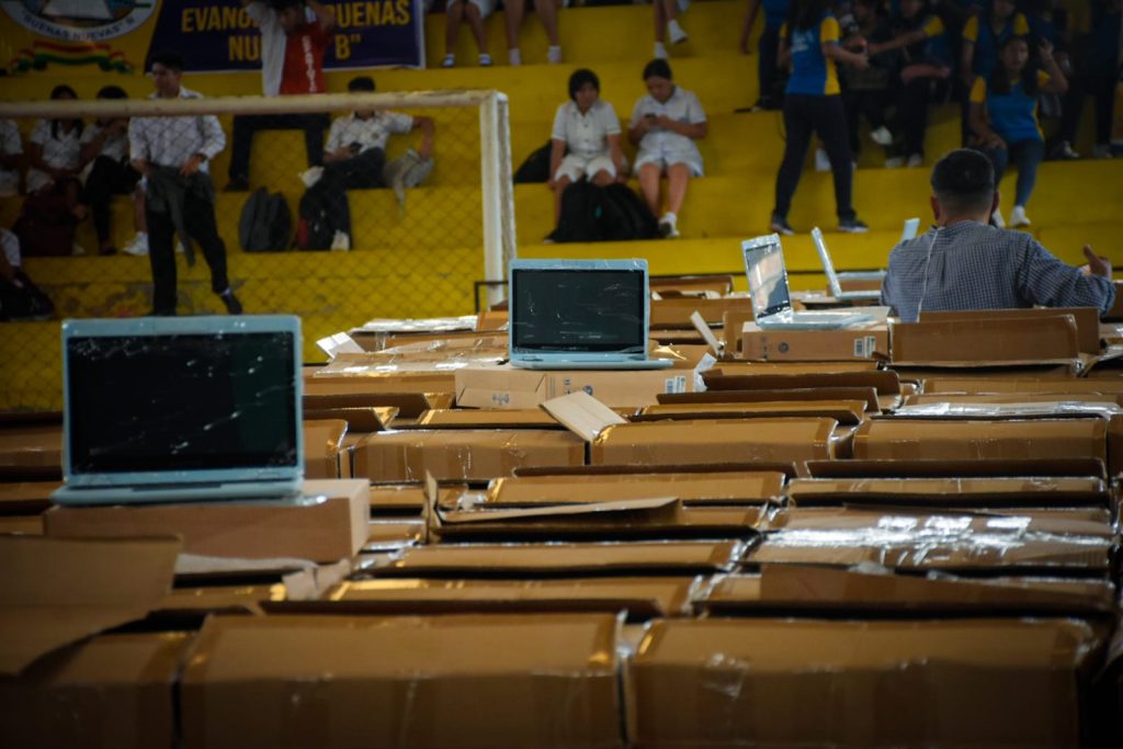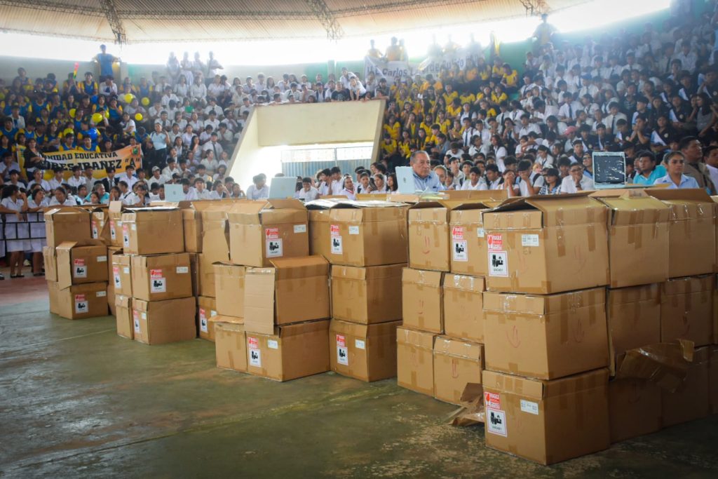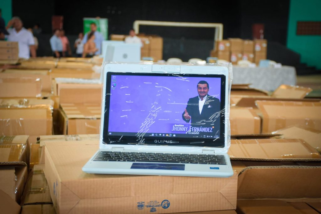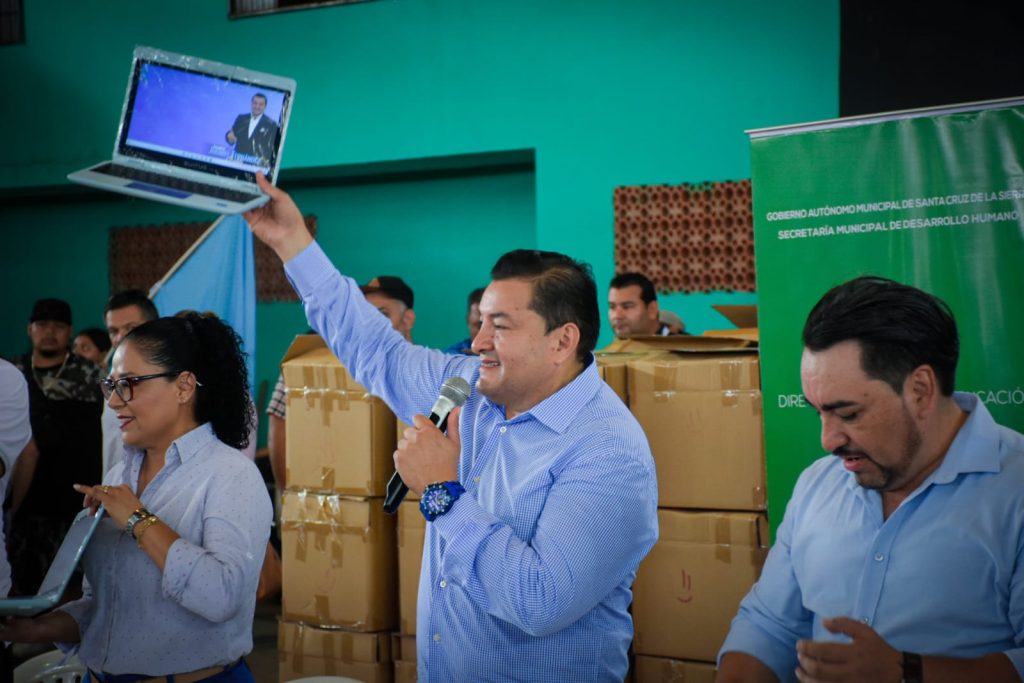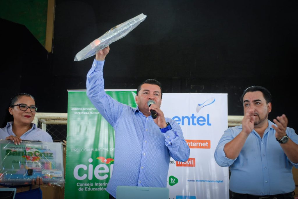 “Santa Cruz es uno de los primeros municipios que está instalando estas plataformas educativas y que está entregando material como es esta computadora para cada uno de los estudiantes, especialmente secundaria”, sostuvo el burgomaestre.