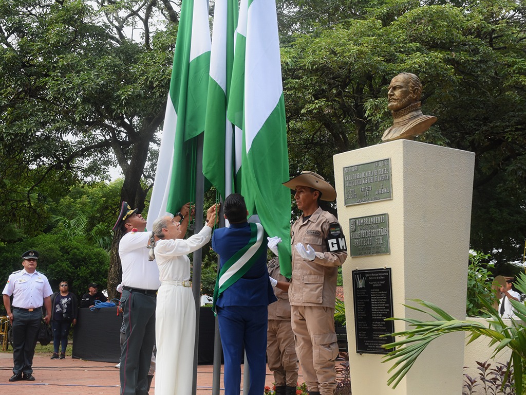 La ceremonia contó con la presencia de autoridades municipales, militares y departamentales, y estuvo acompañada por la banda de la Guardia Municipal, reafirmando el compromiso con la historia, la identidad y el desarrollo de la ciudad.